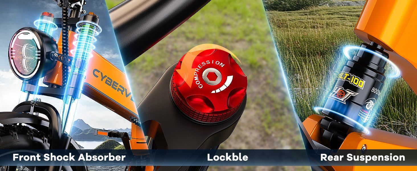 Featuring a lockable front fork and rear hydraulic suspension to absorb every bump, ensuring a smooth ride on any terrain.